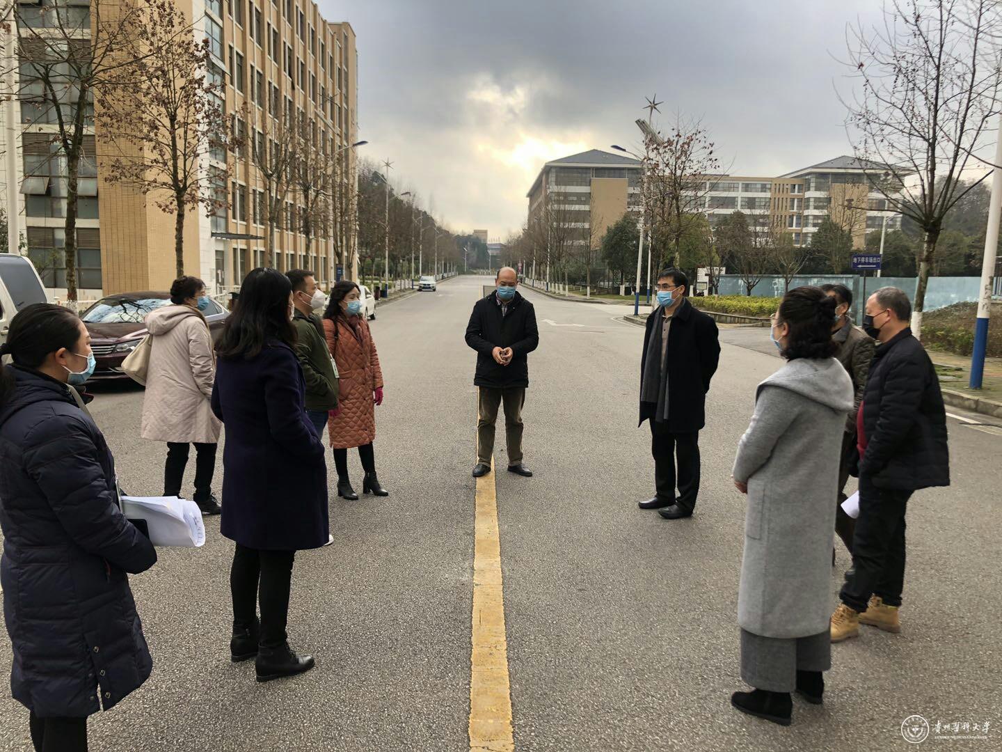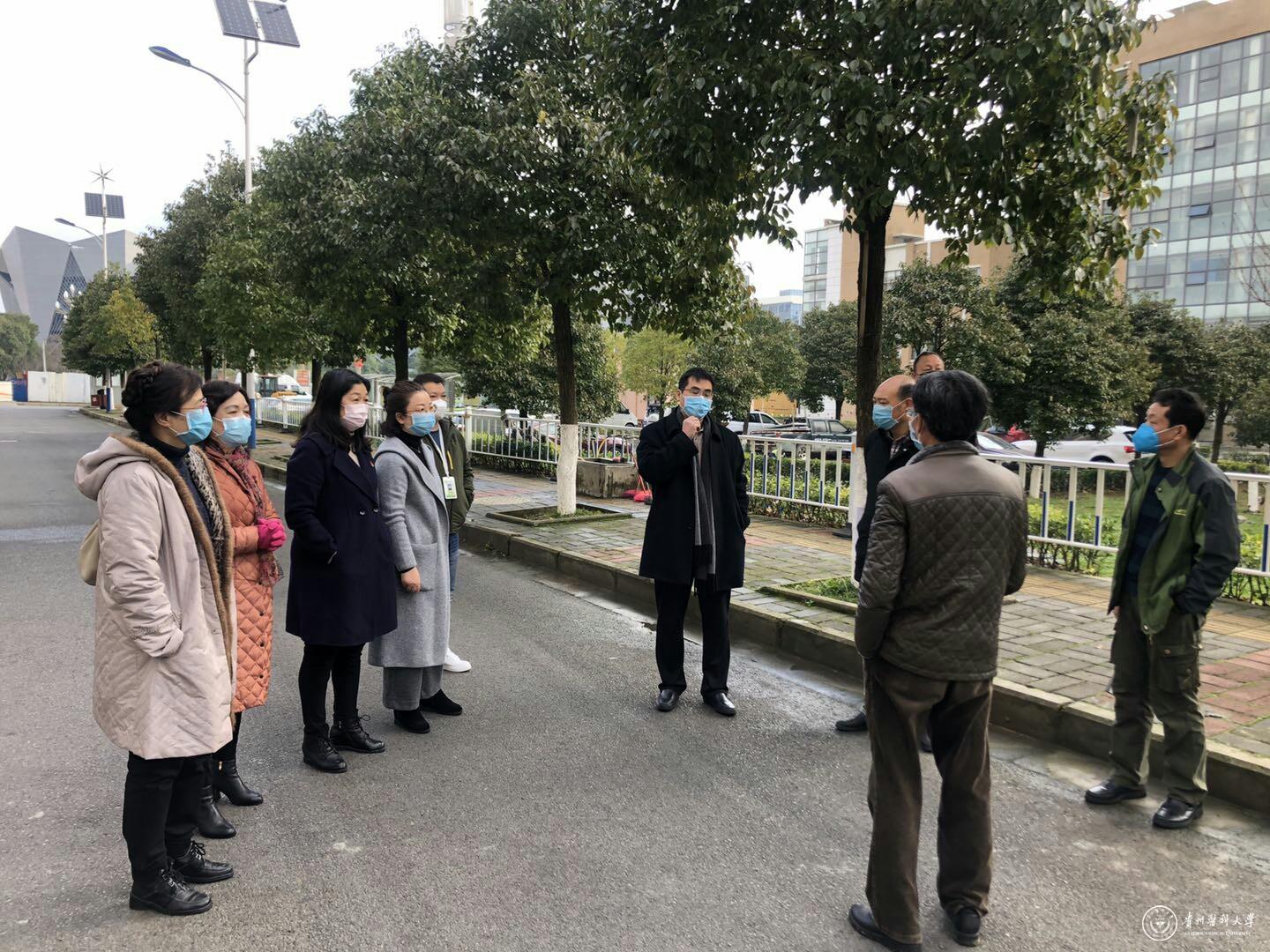 为贯彻落实学校“新冠肺炎”防疫工作的总体要求和工作部署,2月13日,校长罗鹏在校长办公室、后勤管理处、保卫处、国资处、基建处、计信中心等部门负责人的陪同下,对校园封闭情况进行检查,进一步落实学校防疫相关工作。