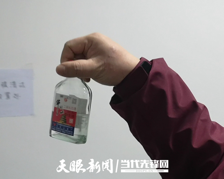 每次从隔离病区出来之后,医护人员要对自己进行细致的消毒工作,口腔、耳朵、鼻腔都不能放过。“我们之前用酒精漱口,但是对粘膜的刺激性还是太大了,后面就换成这种高度白酒,它的酒精浓度也比较高,也能起到效果。”