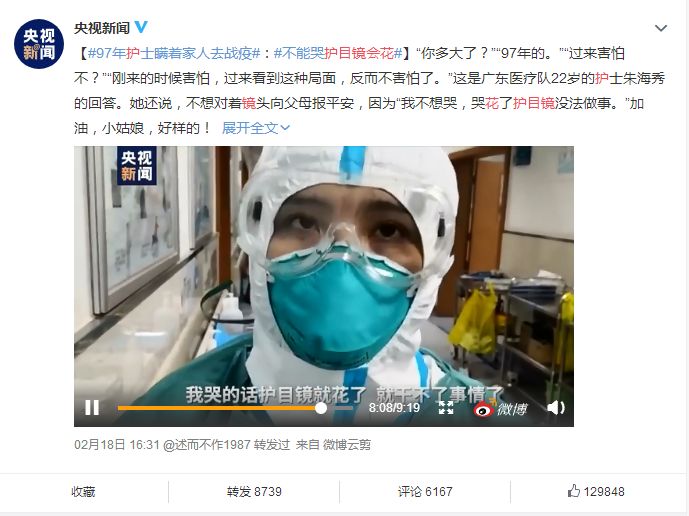 最近,与央视记者在病房的一番对话,让22岁的护士朱海秀上了热搜。朱海秀,河南嵩县人,去年7月大学毕业后,在中山大学附属第三医院内科ICU从事护士工作。大年三十晚上,她随广东援助湖北医疗队奔赴武汉,是全队年龄最小的队员。