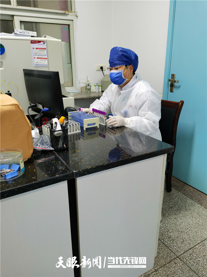 “每天早上到了医院,因为现在没有工人,所以我们都会自己动手打扫卫生。然后去各个病区收集标本,进行分拣、离心、开盖、上机,审核后发报告。”莫非说,检验科的工作说起来简单,但做起来没那么容易。检验人员在检验的过程中,都存在着很大的感染风险。面对风险,检验科里的15人,没有一个退缩,防护好自己的同时,相互配合直至全部完成。