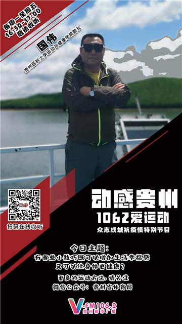 战疫情丨《动感贵州——1062爱运动》众志成城抗疫情特别节目—beat365在线唯一官网运动与健康学院院长国伟教你健康运动!