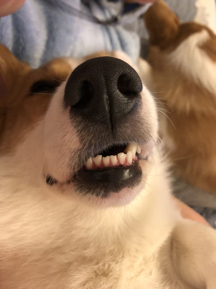 (我的幸福就像我家狗狗“花卷”一样,挂在脸上)