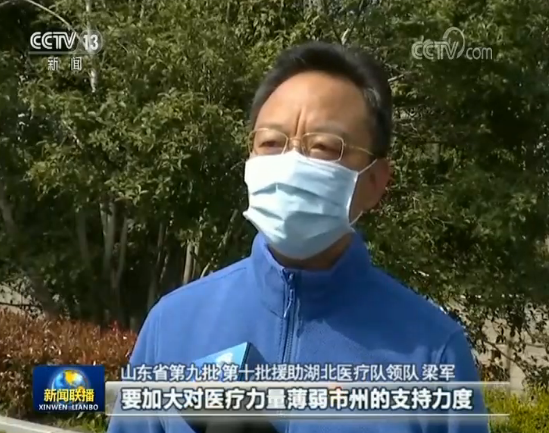 山东省第九批、第十批援助湖北医疗队领队梁军:习近平总书记指出,要加大对医疗力量薄弱市州的支持力度,发挥高水平专家团队的作用,促进优质医疗资源下沉。针对黄冈5个县市区医疗资源比较薄弱的问题,我们通过巡回医疗,远程会诊等各种方式来加强我们的救治能力和救治水平的提高,目前,三个县市区已经实现病人清零,下一步对两个县市区病人的救治进一步抓紧抓实抓细。