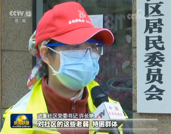 武重社区党委书记许长艳:总书记特别强调了对社区的这些老弱、特困群体,对他们进行帮扶,我们牢记总书记的嘱托,把我们社区的居民服务好,每天我们会开展“三个一”的服务,一次电话、一次简讯、一次上门服务,把需求分类的分别记好,然后预定完了给他送到家里去。