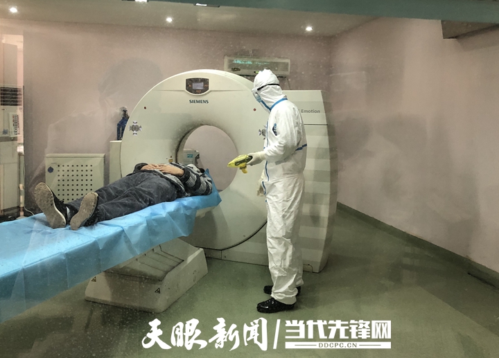 另外,CT检查还需要和患者直接接触,所以引导患者检查的技术员需要做三级防护,全副武装穿戴防护服。