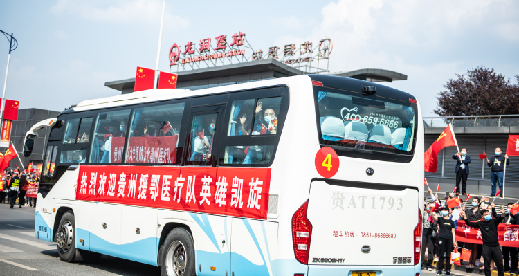 3月26日,丈夫黄秀峰跟随贵州省最后一批从湖北返回的医疗队抵达贵阳。看到医疗队员乘坐的大巴车从机场驶出时,站在迎接队伍里的章婷难掩激动。