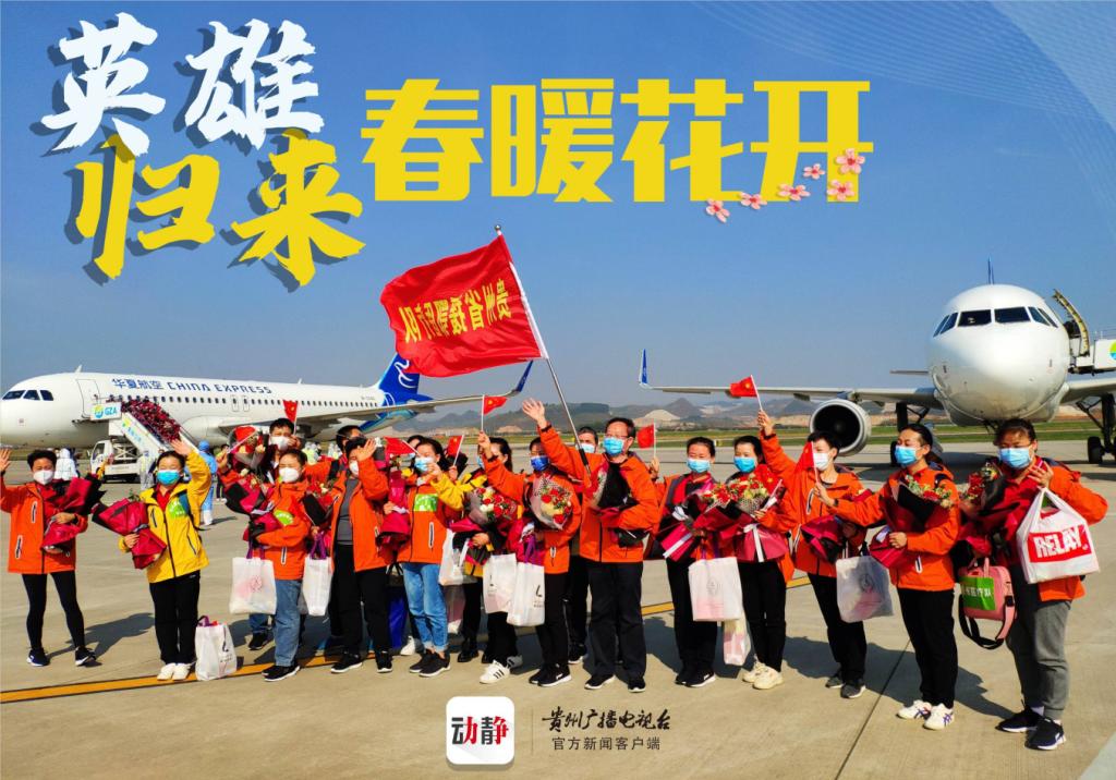 3月19日中午,贵州第7批援鄂医疗队乘机从武汉返回贵阳。