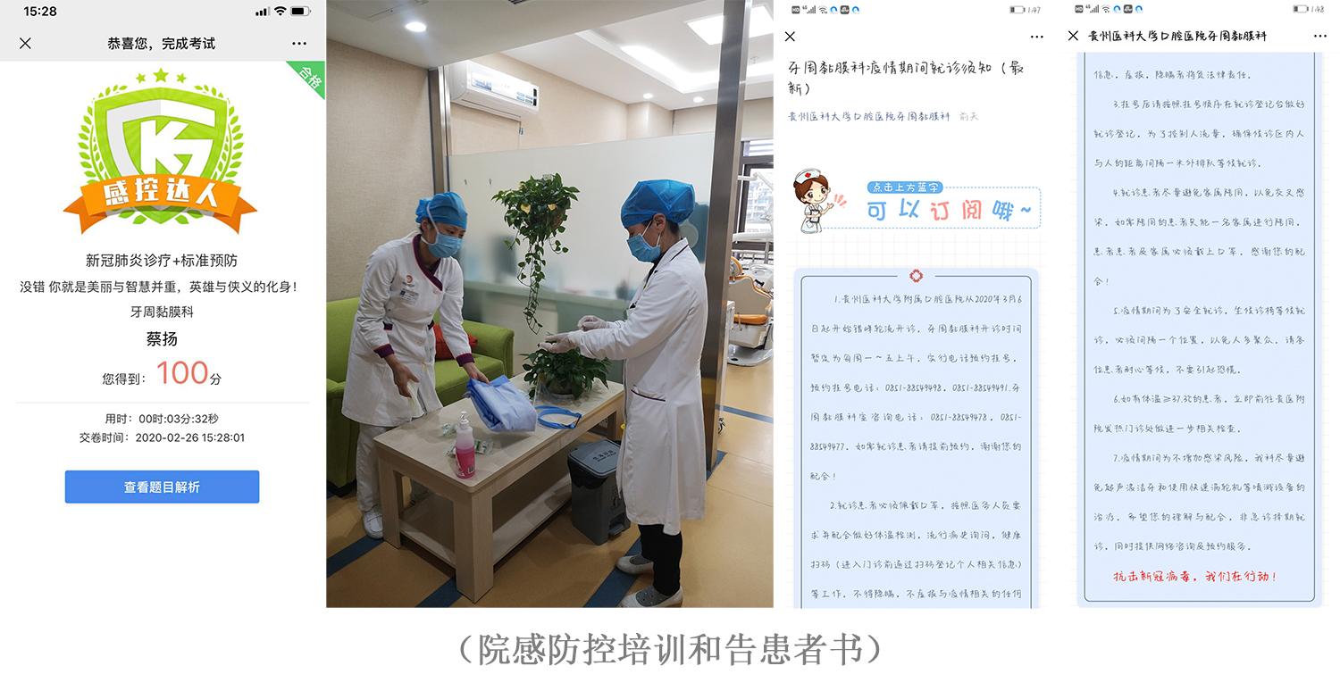 抗疫的第二阶段:在抗疫取得阶段性胜利后,为全面落实上级“一手抓抗击疫情、一手抓恢复生产”的要求,3月份开始,全体党员积极行动起来,为复工复产做准备,牙周黏膜党小组及时在科室工作号发布“牙周黏膜科疫情期间就诊须知”,在严格院感防控和医护防护的前提下,科学有序复工复产,做好口腔医疗服务,解决群众口腔就医需求不能及时得到满足等问题,党员同志们带头投入临床一线工作,解决口腔患者的基本医疗需求。