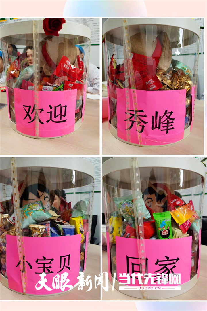 在茫茫人群中,一个别出心裁的迎接礼物吸引了记者的注意。