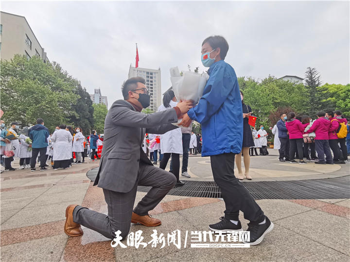 “我觉得她回来变漂亮了,虽然她的头发越来越短,但妻子在我心里永远那么美。”游灿青的丈夫单膝跪地,奉上一束鲜花,“今天,就我让向你重新求婚吧!”