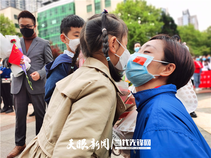 “妈妈,我爱你,这是我们送你的花花。”孩子还小,抱着一大束鲜花有些吃力,游灿青接过鲜花,眼中闪烁着泪水。