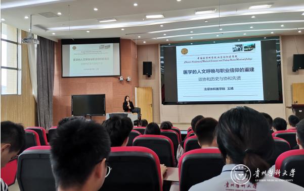 9月18日下午,在厚德楼电教中心,2020级“协和班”班主任,北京协和医学院王婧研究员,为“协和班”新生做了一场《医学的人文呼唤与职业信仰的重建》的专题讲座。王婧从协和医学院的创立、发展,再到协和先贤们的医学温情,最后介绍协和学生应具备的专业素养,向“协和班”学子展现协和医学院深厚的人文底蕴,勉励同学们要做一个医德高尚、医术精湛的高层次医学人才。