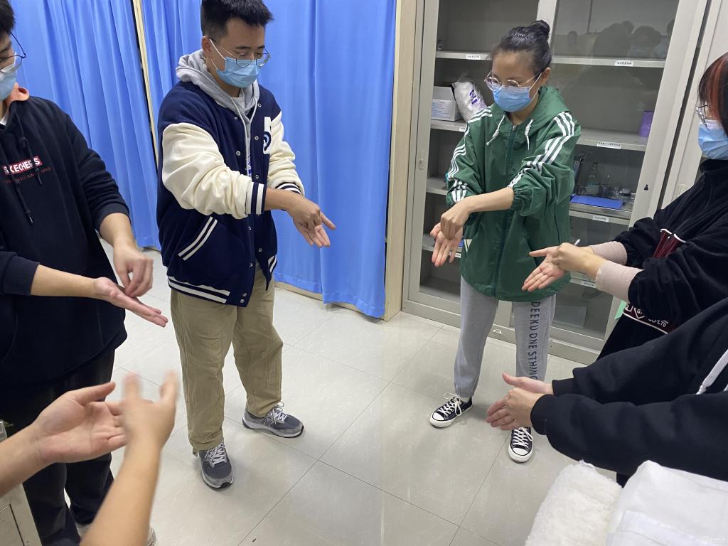 在讲座结束后,“协和班”同学分为多个小组,在护理学院专业师生的指导下,开展防护实训练习。同学们全心投入,认真对待每一个二级防护穿脱的步骤,为时刻支援国家疫情防控工作做好充分准备。