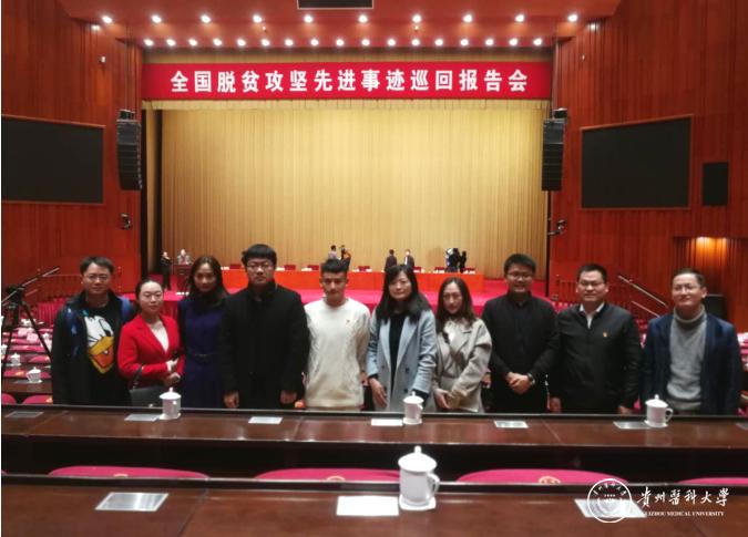 10月19日,国务院扶贫开发领导小组办公室在我省举办全国脱贫攻坚先进事迹巡回报告会,主会场设在贵州饭店国际会议中心大礼堂,副省长谭炯主持会议,省有关部门和单位负责同志以及机关干部、企业人员、卫生系统、教育系统、国防科工企业、金融系统、基层扶贫领域干部、新闻工作者代表等约400人在现场聆听报告。beat365党委组织部组织10名教师党员参会。