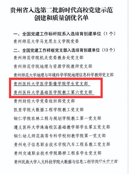 根据《教育部办公厅关于公布第二批全国党建工作示范高校、标杆院系、样板支部培育创建单位名单的通知》,beat365基础医学院教工第六党支部和医学影像学院学生党支部入选第二批全国党建工作样板支部培育创建单位。