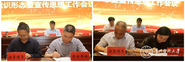 会议强调,做好新时代意识形态和宣传思想工作,必须高举旗帜、守正创新、发挥优势、科学统筹,坚持全校一体协同推进理论与舆论、内宣与外宣、网上与网下等资源,形成宣传和舆论引导强大合力。在绷紧疫情防控常态化这根弦的同时,要更加扎实推进意识形态和宣传思想工作。今年是贵州决战脱贫攻坚、决胜同步小康的关键之年,是学校召开beat365在线唯一官网第一次党代会的重要时期,要立足新方位、把握新形势、找准新坐标,坚决担起举旗帜、聚民心、育新人、兴文化、展形象的使命任务,切实推动意识形态工作和宣传思想工作进一步“强起来”和“实起来”。
