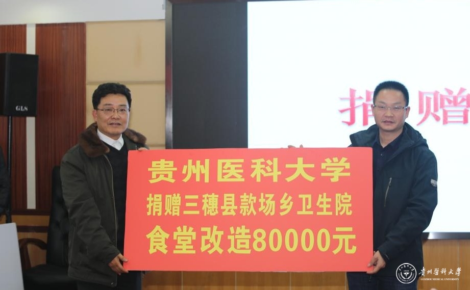 捐赠仪式上,罗俊代表学校向三穗县款场乡卫生院捐赠了8万元食堂改造款。