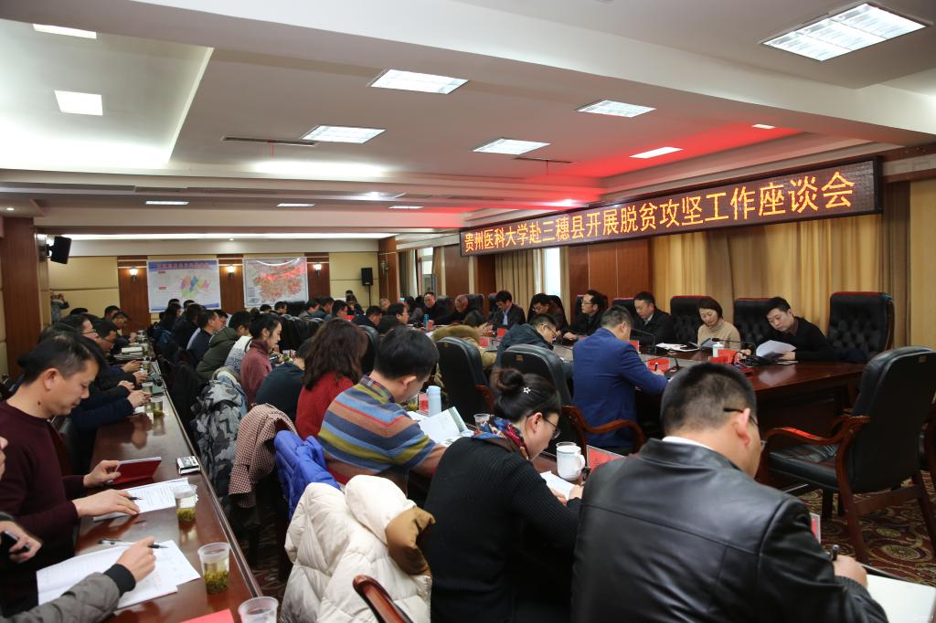 12月7日,校党委副书记、校长罗鹏带队赴三穗县开展“促进产业项目发展”党建扶贫工作,校领导罗俊,田晓滨,陈代勇,曾柱,汤磊一同前往。党委组织部、党委宣传部、校工会、后勤管理处、科技创新与产业发展处以及部分二级学院相关领导和有关专业科技专家、驻村干部、第二附属医院相关同志等40余人参加。