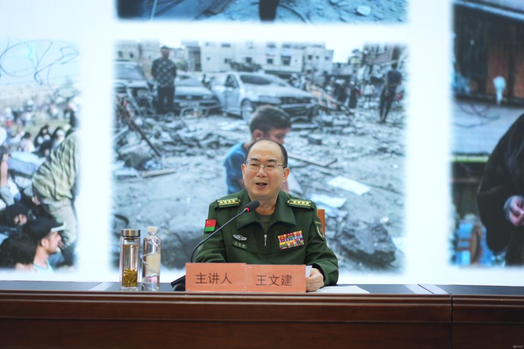 王文建从“我和我的祖国、我和人民军队、我和我们的时代”三个方面,以国家安全为线,围绕祖国、军队和时代,进行了精彩讲授。他以革命先辈并结合自身参军经历对组织和事业的感悟为例,层层递进,带着师生共同思考什么是正确的世界观、人生观、价值观,引导师生自觉践行总体国家安全观,维护国家安全,筑牢国家安全意识防线。