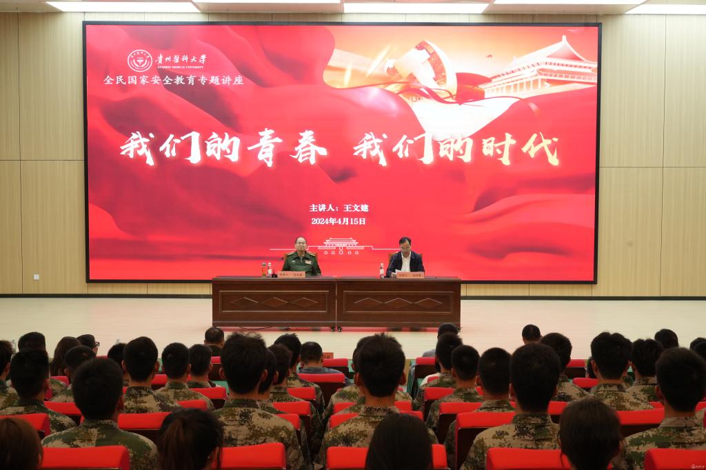 贵阳警备区党委书记、政治委员王文建大校莅临beat365以“我们的青春 我们的时代”为题给广大师生作全民国家安全教育专题讲座。