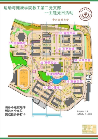 本次活动主题为“传承红色基因,弘扬红色文化”,将党建的知识巧妙的融入到定向运动地图中,让党员同志在运动中来进一步认识和了解党建知识、传承红色基因和体验贵医故事。