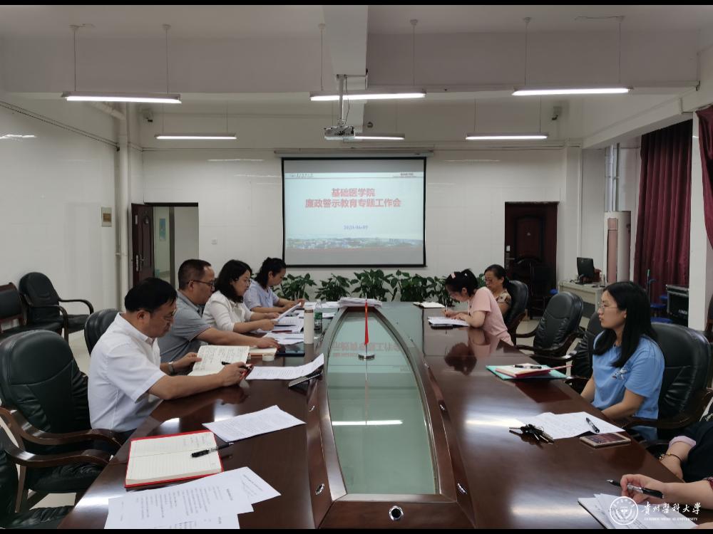 6月9日,基础医学院在南校区务本楼会议室召开党风廉政警示教育会议,传达学习学校党风廉政警示教育会议精神。学院党委副书记王妤煜主持会议,院长曾柱、副院长刘杰麟、副院长康颖倩、副院长张春林、副处级组织员邓欣、党委委员参加,各党支部书记、全院副科级以上干部参加会议。