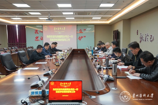 4月26日,贵安新区马场镇党委书记周治一行来校调研交流并召开座谈会。副校长、云漫湖校区建设领导小组办公室主任田晓滨主持会议并讲话。马场镇政府、学校党委学生工作部、后勤管理处、基建处、科技创新与产业发展处、云漫湖校区建设领导小组办公室相关负责人员参加。