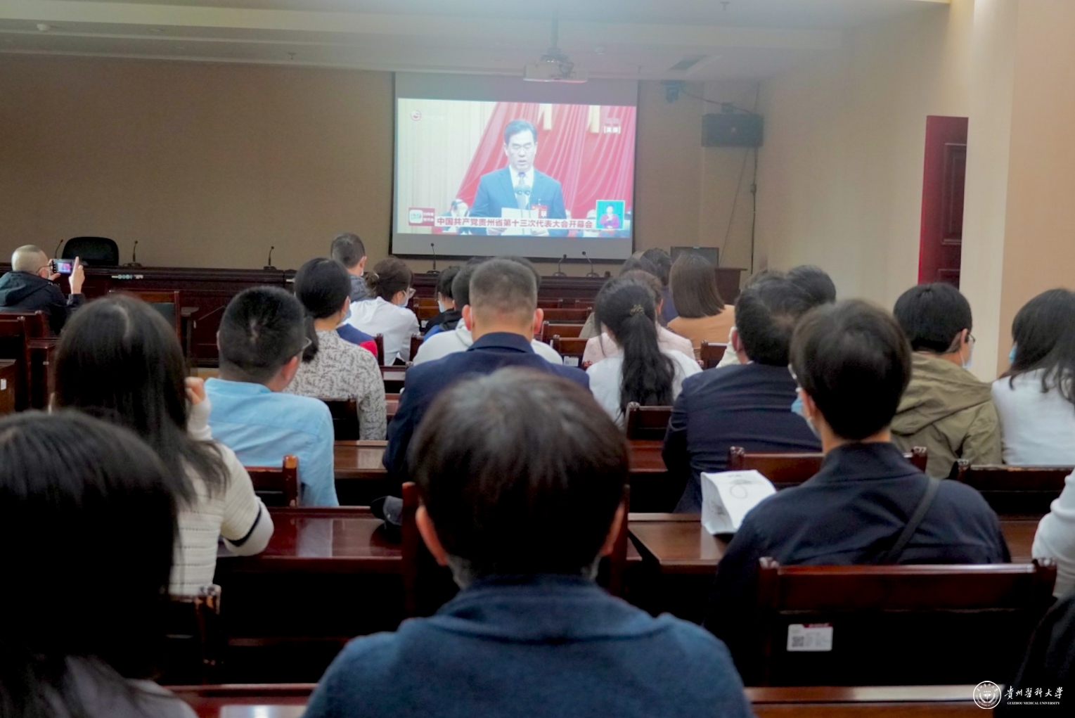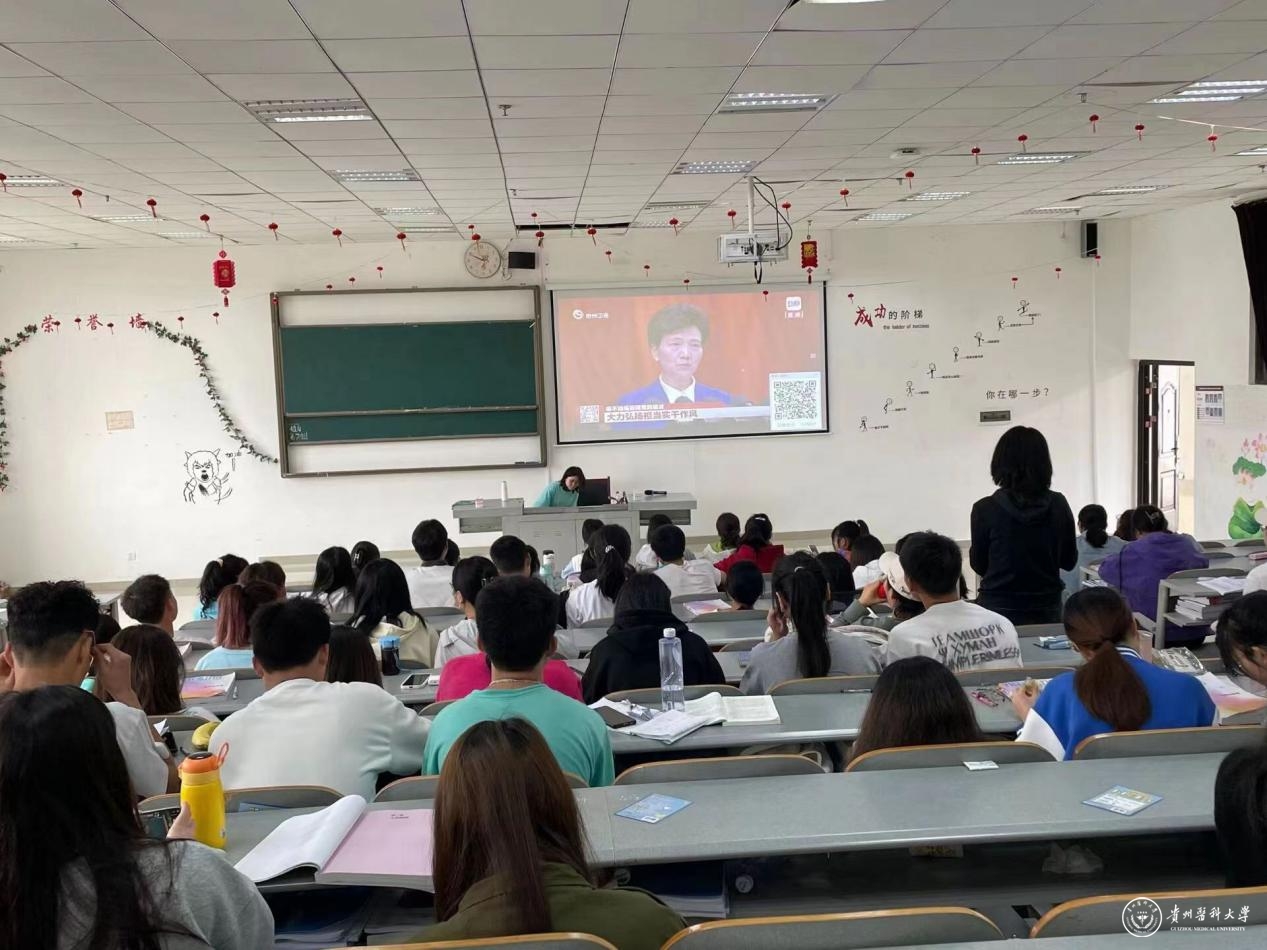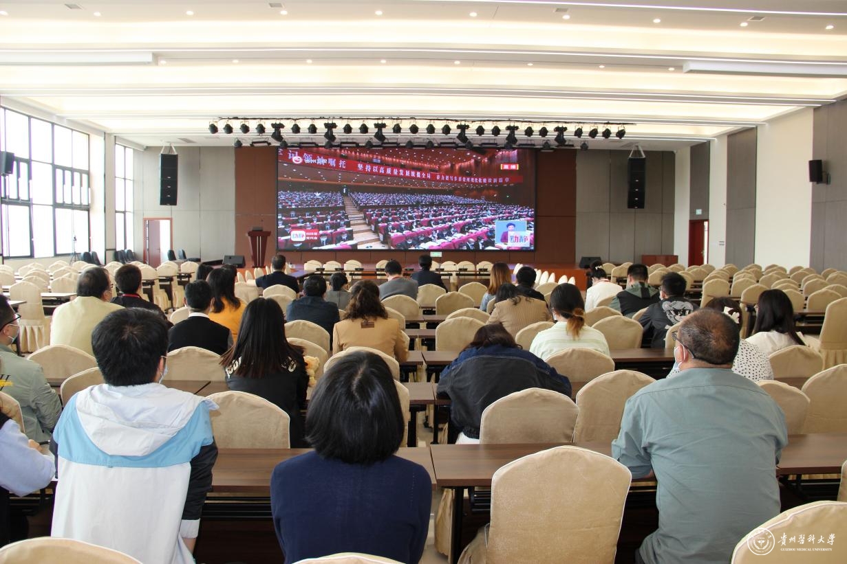 4月25日上午9:00,中国共产党贵州省第十三次代表大会正式开幕,谌贻琴同志代表中国共产党贵州省第十二届委员会向大会作报告。beat365认真组织党员领导干部、师生代表在花溪校区、北京路校区分别集中收看大会开幕盛况,并将收看大会开幕现场直播作为党委中心组理论学习、党支部活动及教职工政治理论学习的重要内容。
