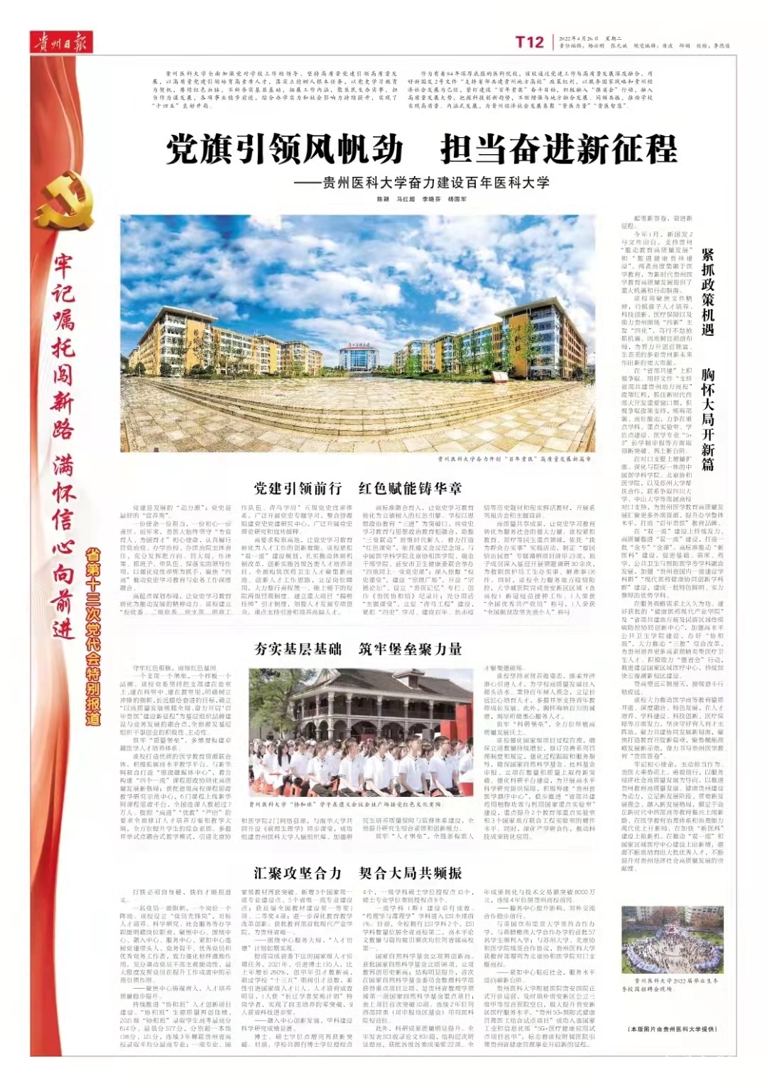 该校大力推动医学高等教育质量并进、深度融合、特色发展,在人才培养、学科建设、科技创新、医疗保障等方面发力,坚决守好育人育才主阵地,聚力共建协同发展新局面,聚焦打造教育开放新篇章,聚势赋能战略发展新示范,奋力书写贵州医学教育“贵医答卷”。