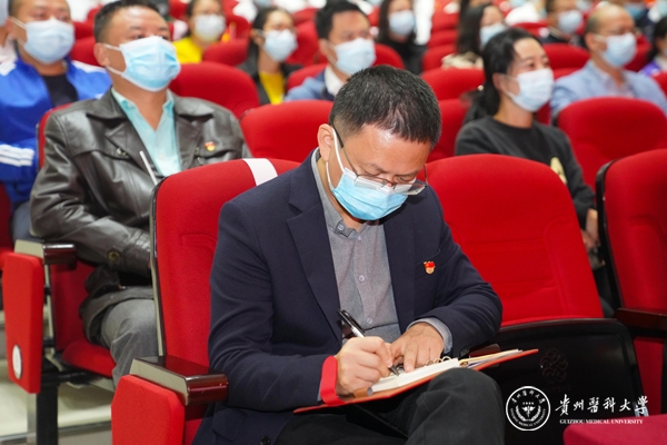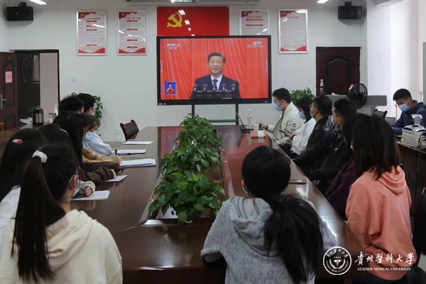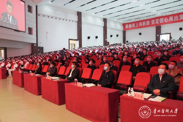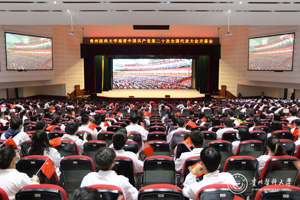 10月16日,中国共产党第二十次全国代表大会在北京隆重开幕。上午10时,beat365在线唯一官网党政领导、副科级以上干部、教师党员代表、医护人员代表、党外教职工代表、辅导员代表、学生代表、离退休老同志代表分别在花溪校区礼堂、北京路校区六楼连廊会议室收听收看开幕直播盛况。全体党员干部及广大教职医护员工生以高昂的精神和饱满的热情,认真聆听、学习领会大会精神。