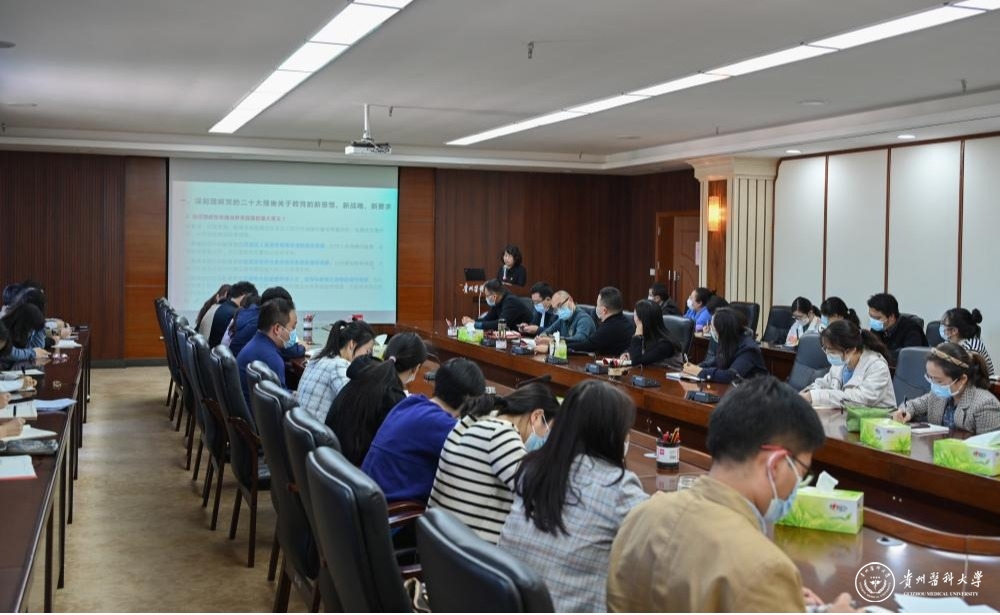 11月28日,副校长、党委组织部部长蒋红梅在南校区知雨楼7楼会议室为分管部门和联系单位党员作党的二十大精神和省第十三次党代会精神专题宣讲。