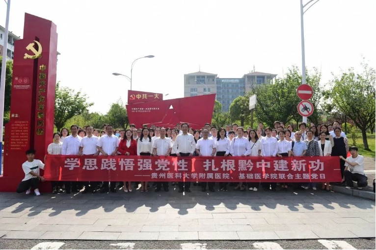 5月18日,基础医学院教工党支部、学生党支部联合附属医院机关第一、第二党支部,麻醉第一、第二党支部,外科第十三党支部,病理科党支部共同开展“学思践悟强党性 扎根黔中建新功”主题党日活动。校党委委员、附属医院党委书记李海洋,校党委委员、副校长曾柱,附属医院党委副书记代宏及基础医学院党政班子成员,教工和学生党支部代表参加。