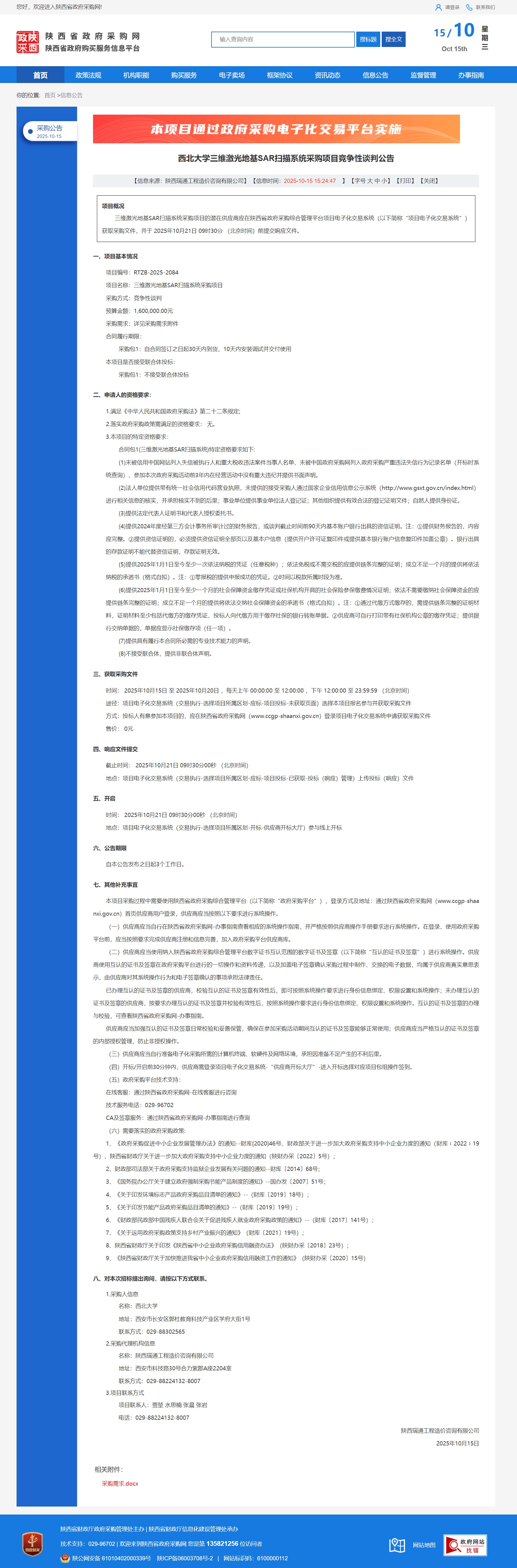 welcome欢迎光临威尼斯集团三维激光地基SAR扫描系统采购项目竞争性谈判公告
