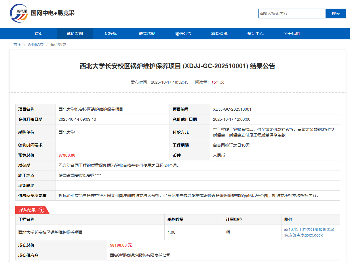 welcome欢迎光临威尼斯集团锅炉排放污染物指标监测服务采购项目(XDJJ-FW-202509002)竞价结果公告