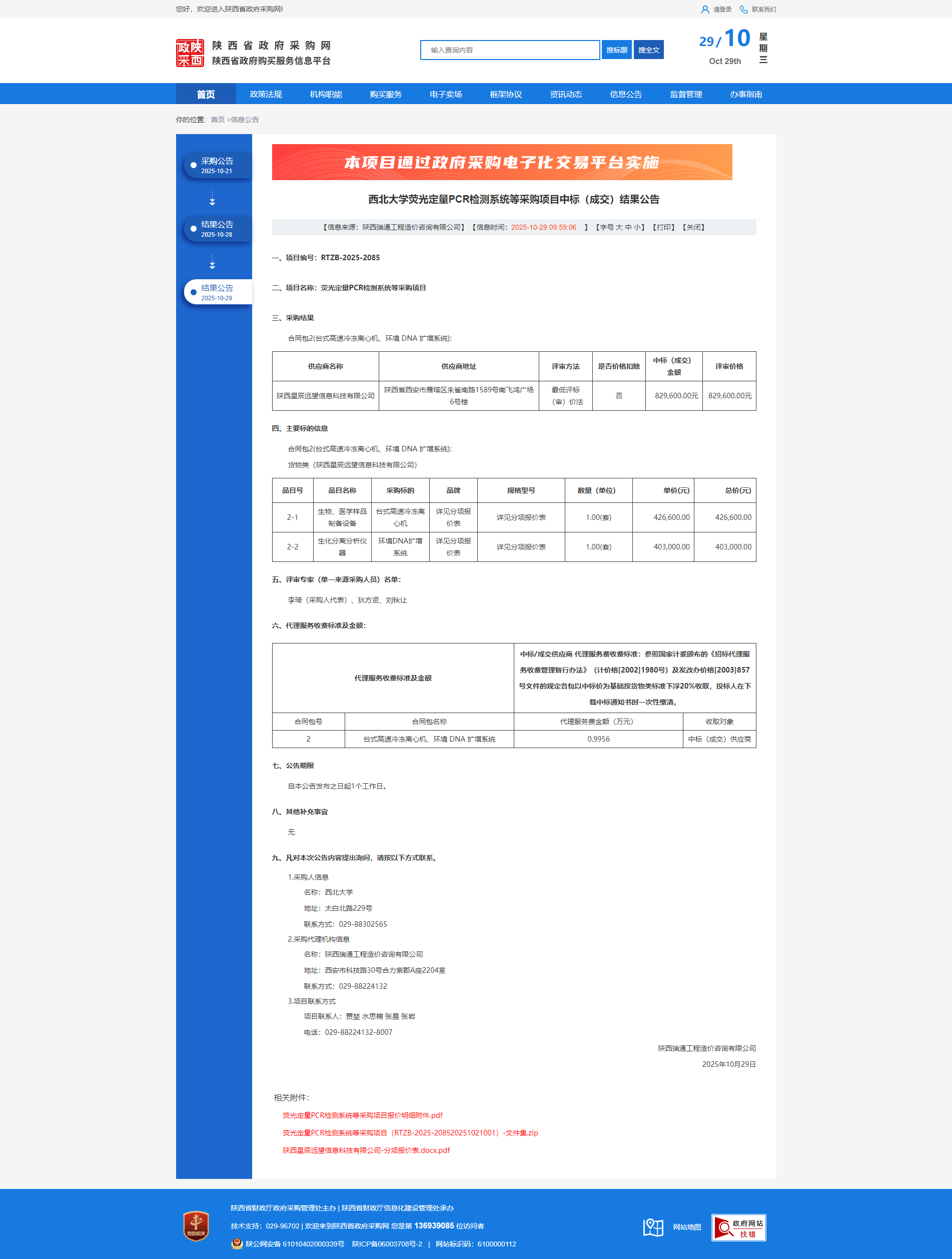 welcome欢迎光临威尼斯集团荧光定量PCR检测系统等采购项目中标(成交)结果公告