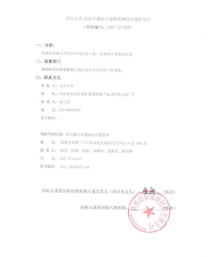 welcome欢迎光临威尼斯集团2026年教职工蛋糕采购项目废标公告