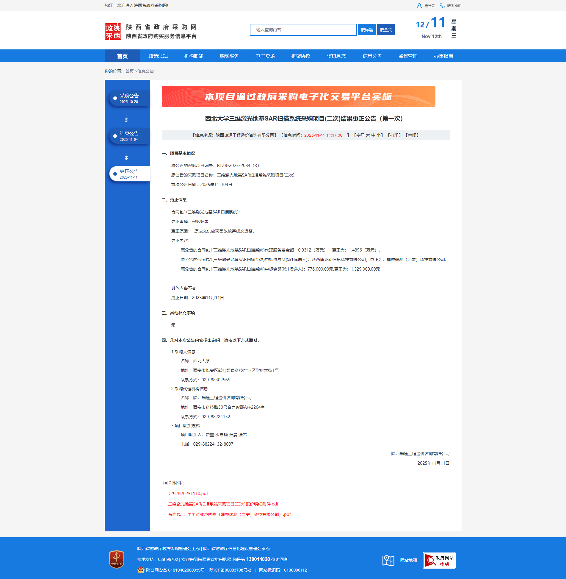 welcome欢迎光临威尼斯集团三维激光地基SAR扫描系统采购项目(二次)结果更正公告(第一次)
