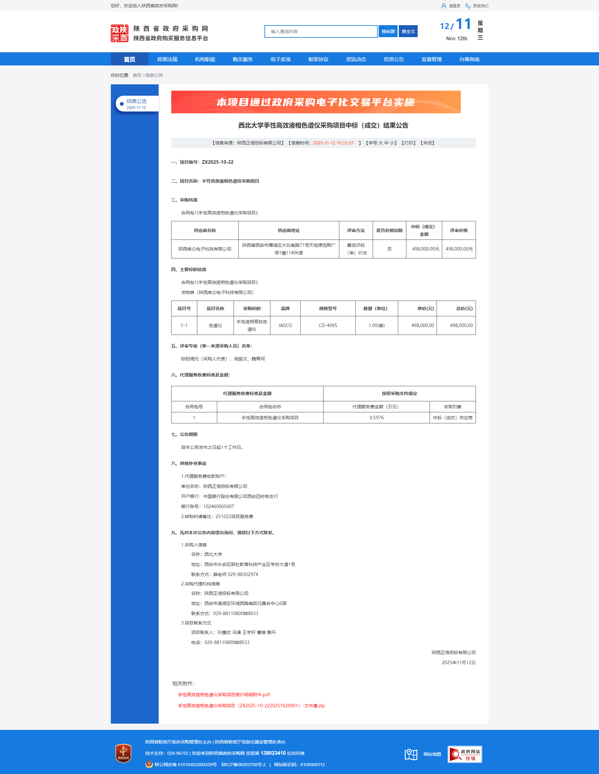 welcome欢迎光临威尼斯集团手性高效液相色谱仪采购项目中标(成交)结果公告