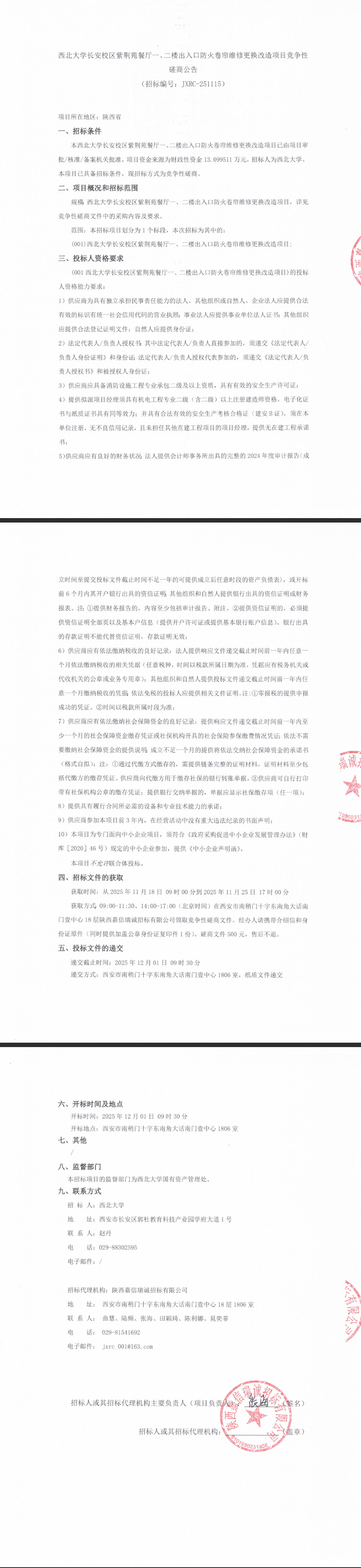 welcome欢迎光临威尼斯集团长安校区紫荆苑餐厅一、二楼出入口防火卷帘维修更换改造项目竞争性磋商公告