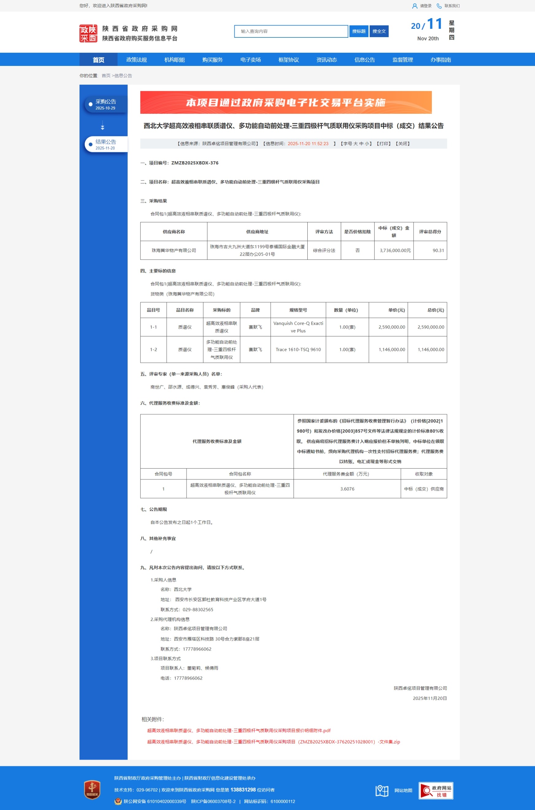 welcome欢迎光临威尼斯集团超高效液相串联质谱仪、多功能自动前处理-三重四极杆气质联用仪采购项目中标(成交)结果公告 作者:国有资产管理处 编辑:国有资产管理处 时间:2025-11-20 原公告链接:https://www.ccgp-shaanxi.gov.cn/freecms/site/shaanxi/ggxx/info/2025/8a69c0019a9a55ca019a9f5c62385454.html?noticeType=001021¬iceId=8d8a5353-c5c6-11f0-8063-08c0eb20c666