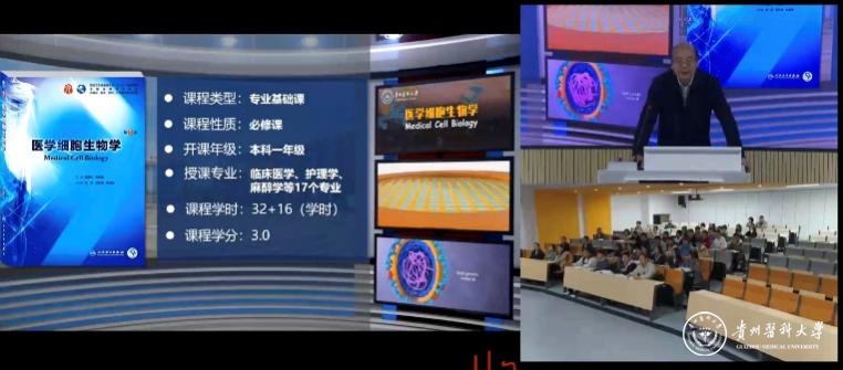 10月7日,beat365在线唯一官网《学在贵医》省级教学“金师”示范课和国家级一流课程《医学细胞生物学》公开课第一讲在临床组团L307S智慧教室开讲,课程通过学习通教学平台进行同步直播。