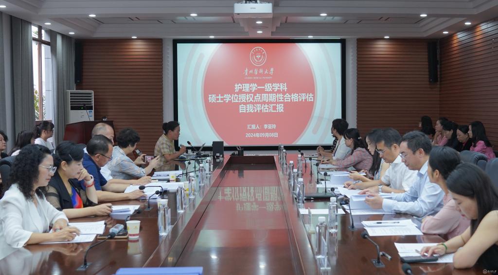 护理学院院长李亚玲作护理学一级学科硕士学位授权点周期工作自评汇报。专家现场查阅相关资料,并与师生代表座谈了解情况。经过专家评议工作会讨论,评审专家现场宣读了评议意见,并对护理学科的建设和发展给予指导。