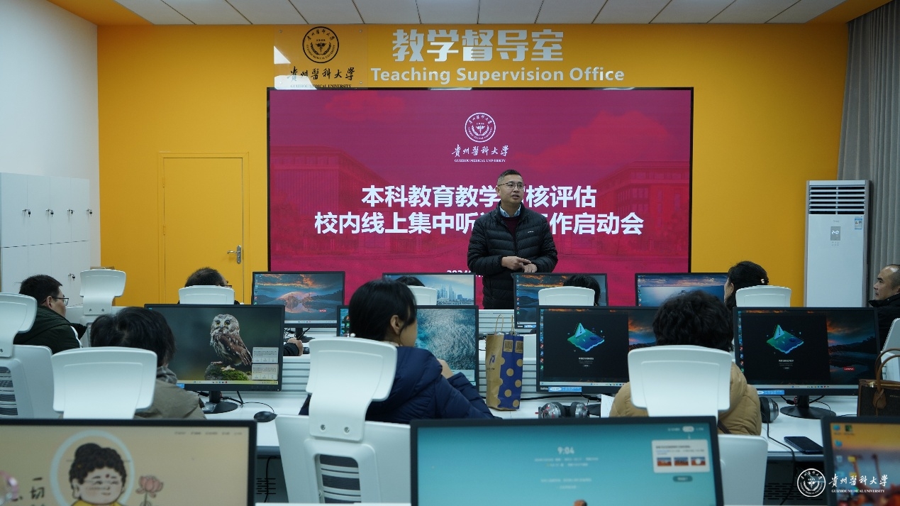 近日,beat365在云漫湖校区教学督导室举行本科教育教学审核评估线上集中听评课启动会。教务处处长汪志勇、教务处副处长修江帆、教学督导委员会委员、优秀青年教师骨干、教学质量监控与评估办公室、现代教育技术中心等30余名人员,通过“贵医云”智慧教学督导平台开展线上集中听评课。