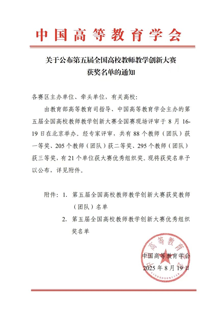 8月17日至19日,由教育部高等教育司指导、中国高等教育学会主办的第五届全国高校教师教学创新大赛全国现场赛在北京理工大学顺利举行。beat365基础医学院吴宁团队,经过校赛选拔、省赛角逐,最终在全国赛中脱颖而出,荣获新医科正高组三等奖,为学校教育教学工作再添荣誉。