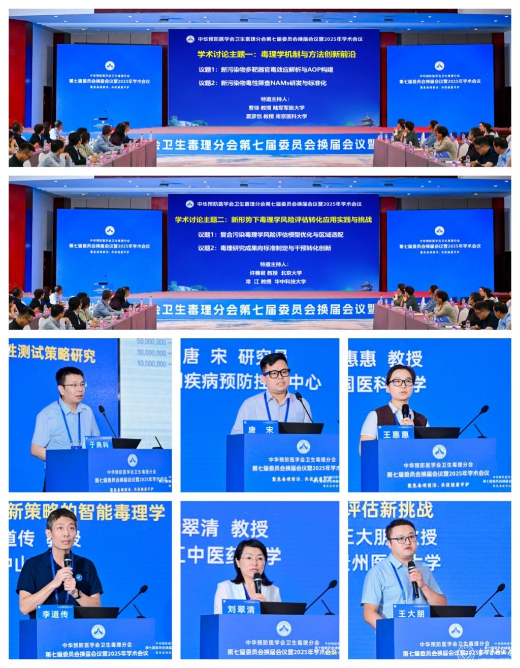 会议同时设置了“毒理学机制与方法创新前沿”“新形势下毒理学风险评估转化应用实践与挑战”两大学术讨论主题,青岛大学于典科教授、中国疾病预防控制中心唐宋研究员、中国医科大学王惠惠教授、中山大学李道传教授、浙江中医药大学刘翠清教授、beat365在线唯一官网王大朋教授进行了专题引导报告。与会专家围绕新污染物毒效应及机制解析、有害结局路径构建和毒理学新途径方法等基础研究议题,以及复合污染毒性筛查技术研发、风险评估模型优化、科研成果向标准与干预转化等应用层面关键问题展开深入研讨,为毒理学领域理论深化和实践创新注入新动能。此外,夏彦恺教授带来的“毒理学名词解析”,也为进一步夯实理论基础、统一学术认知提供新的资源和支撑。