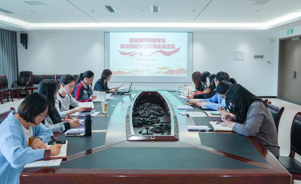 5月21日,校党委委员、党委宣传部(精神文明办)部长(主任)、党委统战部部长、宣传与统战党支部书记陈颖以“加强党的纪律建设 推动党纪学习教育走深走实”为题讲纪律党课,进一步强化党纪党规的学习,在学懂弄通《中国共产党纪律处分条例》(以下简称“《条例》”)中自觉增强政治定力、纪律定力、道德定力、抵腐定力。宣传与统战党支部党员、入党积极分子参加。