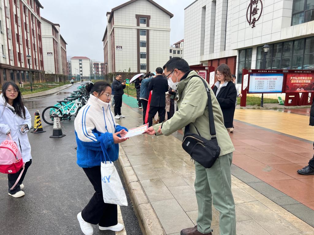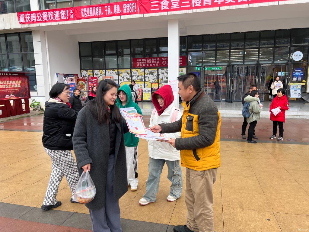 宣讲结束后,洪峰以普通党员身份参加后勤管理处党总支基层党支部、计信审计与实验动物中心党支部、财务与学报党支部联合开展的主题党日暨我为师生办实事活动。活动以“大力弘扬宪法精神·推动进一步全面深化改革”为主题,旨在强化党员干部们带头宣法学法责任担当,落实高校党组织普法主体责任,全面提升师生的宪法意识和法治素养。在云漫湖校区3号、4号食堂门口和用餐区,党员们以发放宣传单、面对面答疑等方式,带头宣传依法治校涵盖范围、提升学法、守法、用法、尊法意识,为师生们解答在校园学习、工作、生活中遇到的涉法涉规问题和实际困难等,推动宪法学习宣传走到师生身边,走进群众心里。