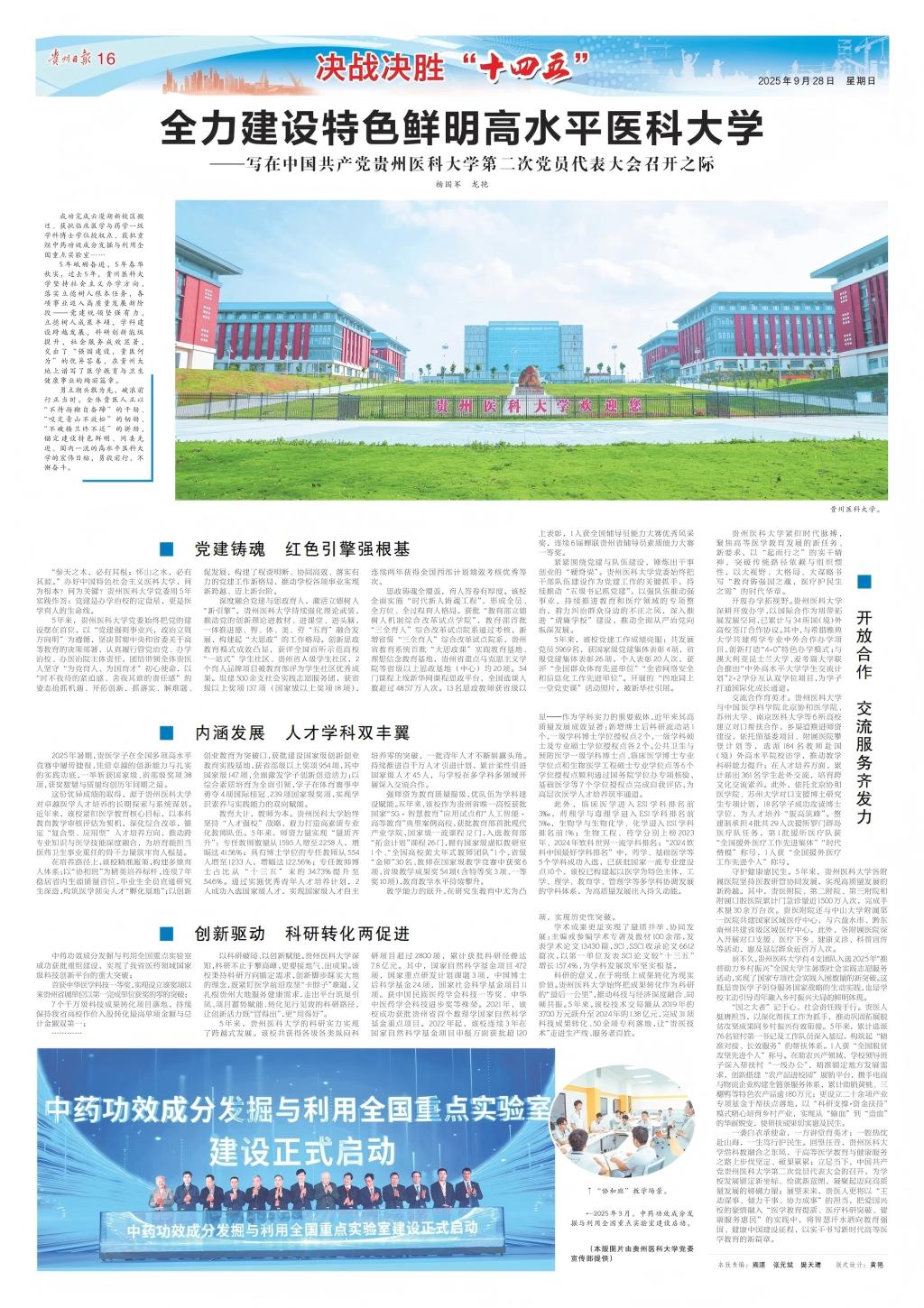 勇立潮头敢为先,破浪前行正当时。全体贵医人正以“不待扬鞭自奋蹄”的干劲、“咬定青山不放松”的韧劲、“不破楼兰终不还”的拼劲,锚定建设特色鲜明、同类先进、国内一流的高水平医科大学的宏伟目标,勇毅前行,不懈奋斗。